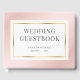 Um livro de hóspedes elegante, cor-de-rosa e ouro. Itens correspondentes disponíveis para complementar este moderno livro de convidados de casamento rosa e ouro.