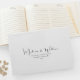 Livro de Convidados de Casamento Negro e Branco Simples e Elegante Moderno. Design Elegante minimalista com uma reviravolta moderna com um roteiro clássico preto no branco. Projetado por Austen & Grace. Todo o texto, fontes e cores frontal e traseira podem ser personalizados por você. Convidamos você a visitar nossa loja Zazzle para ver produtos correspondentes e muito mais. Entre em contato conosco se precisar de assistência.