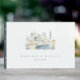 Linda coloração d'água pintou uma cena de linha do horizonte de Nova Iorque pintada aliada a fontes elegantes e modernistas para receber seus convidados de casamento.