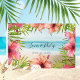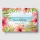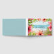 O livro de hóspedes inspirado na ilha apresenta uma paisagem tropical de praia com aquarela enquadrada por folhas de palma e flores de hibisco rosa e coral. O verso é azul-oceano sólido. Personalize-o com os seus próprios nomes e a data do casamento, por uma questão única.