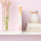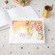 Fundo lavado com aquarela para um caule botânico Freesia de cor rosa-quente. As cores tropicais fazem uma mistura feliz de cor quente. Iniciais, data e título são totalmente personalizáveis.