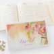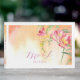 Fundo lavado com aquarela para um caule botânico Freesia de cor rosa-quente. As cores tropicais fazem uma mistura feliz de cor quente. Iniciais, data e título são totalmente personalizáveis.