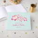 Este livro de hóspedes apresenta flores de plumeria rosa-d'água. Você pode personalizá-lo com noiva e nomes de noivos e data de casamento, tanto na frente do cobrir quanto na coluna. Este livro de hóspedes faz parte da Coleção de Casamentos da Plumeria Tropical que inclui uma gama de cheios de papelaria de casamento como convites para casamento, cartões de resposta, cartões de informação, etiquetas de endereços, selos postais, envelopes, caixas de favoritos, cartões de boas-vindas, programas, menus, presentes de noiva e muito mais. Visite a página de coleta em nossa loja para ver a gama de produtos que você pode personalizar para o seu casamento.