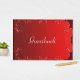 Um símbolo de casamento vermelho muito elegante no livro (por favor note que o texto no cobrir - 'Guestbook' - pode ser personalizado para qualquer coisa que você desejar, ou removido completamente se desejar). O design apresenta um padrão de rolagem vermelho e exuberante nas bordas. Este livro de convidados faz parte de uma coleção de convites de casamento maior com convite correspondente, RSVP, postagem de casamento, etiquetas de endereço de retorno, guardar as datas e muito mais, que podem ser encontradas aqui: https://www.zazzle.com/collections/elegant_red_wedding-119318179366725501