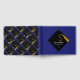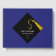 Criação de livro de hóspedes de graduação para incluir palavras de conselho e desejos de boa sorte apresentando padrões de boné preto e ouro em fundo azul. Para personalizar o texto de edição para adicionar o nome do formando, a escola e o ano de classe do mais velho.