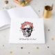 Livro de visitas de casamento temático de caveira - flores pintadas à mão sobrepostas em uma caveira de linha preta antiga.