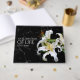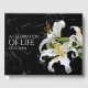 Mantenha a memória dos entes queridos que passaram vivos e queimando brilhantes com este elegante livro de hóspedes / livro de condolências, que apresenta lírios brancos e deliciosamente fragrantes Casablanca Oriental num fundo de mármore negro. Personalize com nome, anos e foto no cobrir traseiro. Baseado na fotografia original e na arte de W.H. Sim. Todos os Direitos Reservados. Mais informações em zazzle.com/expressionsoccasions