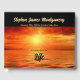 Linda cena do pôr do sol do oceano criada pelo artista com um bando de aves marinhas e um barco a vela fraco à distância. As costas têm uma adorável mensagem de Vida é eterna, amor é imortal, e a morte é apenas um Horizonte junto com a foto falecida. O cobrir tem o nome e os anos.