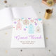 Livro de visitas do Chá de Bebê Floral Elegante Roxo e Azul. O texto pode ser alterado para atender às suas necessidades.