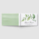 Livro de visitas de chá de panela com tema de folhagem rústica apresentando um design simples com um ramo pintado com aquarela verde com folhas grandes, sobre um fundo branco. Abaixo está o título "Livro de visitas" em letra cursiva e seu nome, título do evento e data em uma fonte serifada. Suas informações também estão na lombada e a parte de trás tem uma lavagem de aquarela verde correspondente. Um design botânico elegante que é perfeito para um chá de panela de verão. Exiba este livro de visitas em sua mesa de café ou prateleira de livros e pegue-o e leia as mensagens de amor sempre que quiser se lembrar de celebrar com suas amigas antes do seu dia especial.