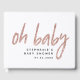 Livro de hóspedes moderno e elegante, com um texto de tipografia com brilho rosa que diz "oh baby". Personalize este produto adicionando o nome da futura mãe e a data do evento. Excelente para um chá de fraldas de menina.