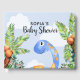 Este bonito e moderno livro de hóspedes do chá de fraldas apresenta um lindo dinossauro aquarela com uma selva e fundo floral. Este design de aquarela exclusivo também oferece um lugar para você adicionar o nome da mãe. A adição perfeita a qualquer festa de chá de fraldas!