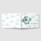 Um livro de hóspedes de chá de fraldas bonito com um pequeno pássaro na sua espaçonave atravessando as nuvens de bebês azuis. Personalizado o texto com suas próprias informações. Ilustrada e projetada por Patricia Alvarez.