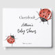 Guestbook de Chá de fraldas branco e preto, com bugs vermelhos de coloração d'água. É muito fácil personalizar, com seus detalhes pessoais.