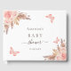 Para um chá de fraldas elegante e moderno. Um fundo branco. Decorado com ouro rosa, florais cor-de-rosa, grama pampas e borboletas. Personalize e adicione um nome e data.