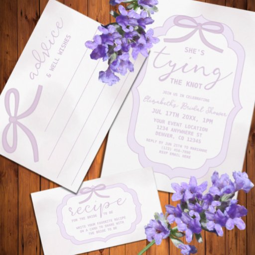 Ela está se casando! Chá de noiva aquarela roxo com laço desenhado à mão