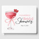 Livro de Visitas de Chá de Noiva moderno e elegante com bebida de coquetel de aquarela apertado com um laço rosa e texto de caligrafia vibrante.