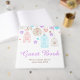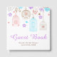Livro de visitas de Chá de Noiva Floral Elegante Roxo e Azul. O texto pode ser alterado para atender às suas necessidades.