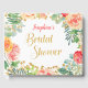 Este livro de hóspedes do chá de panela apresenta falso brilho dourado e flores de aquarela. Personalize com o nome da noiva. Outros itens correspondentes a este design também estão disponíveis em nossa loja.