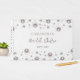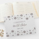 Livro de hóspedes moderno e simples, com pérolas brancas, borda e texto vibrante para caligrafia.