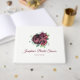 Este livro de hóspedes do chá de panela apresenta um bouquet de rosa burgundy com cor d'água. Você pode personalizá-lo com o nome da noiva, tanto na frente do cobrir quanto na coluna. Este livro de hóspedes faz parte de uma coleção que inclui uma gama de cheios de papelaria de casamento, como convites para casamentos, artigos de papelaria e artigos de noiva. Visite a página de coleta em nossa loja para ver o intervalo de cheios.
