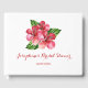 Este livro de hóspedes do chá de panela apresenta flores vermelhas tropicais de hibisco. Personalize-o com o nome das noivas na frente e o nome e data na coluna. Este livro de hóspedes faz parte de uma coleção que inclui uma gama de cheios de artigos de papelaria e de noivas correspondentes. Visite a página de coleta em nossa loja para ver a gama de produtos que você pode personalizar para o seu casamento.
