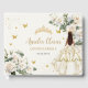 Prepare seu dia especial para os anos virem com um livro de hóspedes. Apresentando rosas brancas de marfim encantadoras, uma garota vestida com um lindo vestido de marfim de champanhe, e borboletas de ouro ferrantes. Personalize-o com seus detalhes de forma fácil e rápida, basta pressionar o botão personalizar para reorganizar e formatar o estilo e a colocação do texto. c) O Feliz Cat Studio