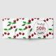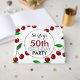 Cereja clássica e Folha. Livro de convidados do cobrir sobre o duro com textos em um círculo branco para a 50ª Festa de aniversário personalizar. Você pode personalizá-lo redimensionando o padrão, alterar a cor do plano de fundo e o texto à sua conveniência. Desenhado por René Bui.