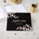 Pretty apricot cherry blossoms on a black background. With a guestbook text and a calligraphic handwritten script.