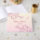 Uma cereja rosa bonito floresce e duas borboletas bonitinhas num fundo rosa. Nomes personalizados de noiva e noivo escritos em um script manuscrito caligráfico. Se você clicar em: personalizar modelo- você pode personalizar os textos da frente e da coluna juntos. Se você quiser fazer outras alterações ou ter os textos da parte frontal e da coluna de forma diferente, vá para a seção de camadas clicando em: Editar design.