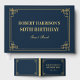 Capture cada memória com este elegante livro de visitas Art Déco em azul marinho e dourado. ⚜️ Com um design sofisticado de ocasião especial, este livro de capa dura de alta qualidade é o presente perfeito para uma celebração formal de 80 anos. Fácil de personalizar com o nome do homenageado na capa e lombada. ✨