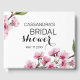 Livro de Visitas de Chuva de Noiva moderno e minimalista com ramos de flores de cerejeira rosa em aquarela e texto em caligrafia vibrante.