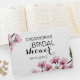 Livro de Visitas de Chuva de Noiva moderno e minimalista com ramos de flores de cerejeira rosa em aquarela e texto em caligrafia vibrante.