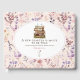 Este doce álbum de convidados floral é para um evento de chuva de presentes de casamento, com o tema 'Novo capítulo'. Com o texto - "Um novo capítulo está prestes a ser contado". A capa do livro apresenta ilustrações de uma pilha de livros decorados com flores em aquarela e o fundo é de flores silvestres da primavera em cores suaves. Fonte de estilo de texto inglês clássico para uma sensação de livros de ilustração de crianças antigos.