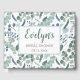 Este livro de visitas de chuva de presentes tem um design moderno de padrão de folhagem de eucalipto em cores suaves de azul turquesa, verde menta e branco. Você pode personalizar o livro de visitas alterando o nome, o evento (como chuva de presentes, chá de noiva, festa de noivado, festa no jardim, etc.) e a data.