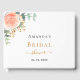 Para uma chuva de presentes elegante e feminina. Um fundo branco chic. Decorado com uma rosa em aquarela rosa dourado e rosa, flor, floral, folhas de eucalipto verdes, raminhos, folhagem e raminhos dourados falsos. Personalize e um nome. Letras pretas e douradas. Lombada: adicione seu próprio texto.