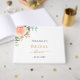 Para uma Chuva de Presentes elegante e feminina. Um fundo branco chic. Decorado com uma rosa rose gold e flores rosa água-marinha, flor, floral, folhas de eucalipto verdes, raminhos, folhagem e raminhos de ouro falso. Personalize e um nome. Letras pretas e douradas. Lombada: adicione seu próprio texto.