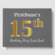 Este design de livro convidado apresenta o número ordinal "15" com uma aparência falsa/imitada em forma de ouro. Também apresenta um nome personalizado e uma cinza (cinza) de fundo colorido. Ela poderia ser usada numa festa de aniversário para alguém que comemora seu décimo quinto aniversário. [~Z0000193]