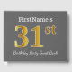Este design de livro convidado apresenta o número ordinal "31st" com uma aparência falsa/imitada em forma de ouro. Ele também apresenta um nome personalizado e um fundo colorido de uma cinza (cinza). Pode ser usado numa festa de aniversário para alguém que comemora seus trinta anos de primeiro aniversário. [~Z0000193]