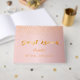 Um livro de visitas para uma Chuva de Bênçãos glamorosa, elegante e moderna. Um fundo degradê de rosa poeirento chic com confete dourado. O texto: Livro de Visitas é escrito com letras douradas da moda. Os nomes e datas são escritos com um estilo de letra manuscrita, texto dourado. Modelo para o seu texto na lombada, texto cinza.