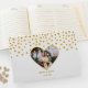 O elegante metal dourado parece confete no Livro de Convidados branco. Texto e imagem prontos para serem personalizados.