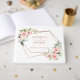 Moderno e moderno, este maravilhoso design do livro de convidados apresenta um falso rosa de ouro geométrico embelezado com rosas e flores cor-de-água cor-de-rosa. Os nomes dos casais e algumas datas de casamento estão em uma cor de cobre equivalente. Convidados Elegantes de Direitos Autorais. Todos os direitos reservados.