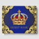 Livro de visitas do príncipe com bela coroa real vermelha e dourada em um fundo azul real e dourado. Este livro de visitas temático de príncipe e rei azul real e dourado é facilmente personalizado para o seu evento, basta adicionar o texto de sua escolha.