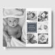 Crie um eterno de seu batizado ou batismo com este livro convidado de colagem de fotos. O design apresenta seis fotos em preto e branco na frente e outras três no cobrir traseiro, em formatos quadrados, verticais e horizontais. Personalize com o nome do seu bebê e a data do batismo em uma elegante inscrição branca num quadrado azul-marinho cinza.