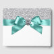 Livro de visitas azul turquesa e prata com fita azul turquesa bonita e laço com centro de diamante em um fundo de brilho prateado. Este livro de visitas azul turquesa elegante é facilmente personalizado para o seu evento, simplesmente adicionando o texto de sua escolha no estilo de letra que preferir. Este é um design impresso sem brilho real, diamantes, fitas, laços, etc.