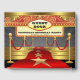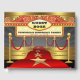 Livro de visitas e festa de aniversário do tapete vermelho de Hollywood com tapete vermelho e dourado, escadas douradas e letreiro vermelho e dourado. Você pode personalizar facilmente este elegante livro de visitas do tapete vermelho de Hollywood para o seu evento, simplesmente adicionando o texto de sua escolha no estilo de fonte que preferir.