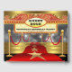 Livro de visitas de festa de aniversário do tapete vermelho de Hollywood com tapete vermelho e dourado, escadas douradas e marquise vermelha e dourada. Você pode personalizar facilmente este livro de visitas elegante do tapete vermelho de Hollywood para o seu evento, simplesmente adicionando o texto de sua escolha no estilo de fonte que preferir.