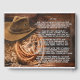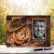 Livro de visitas de funeral e memorial com tema de cowboy com chapéu, corda e fardo de feno em um fundo de madeira rústica com moldura de imagem de corda rústica. Este livro de visitas de funeral com tema de cowboy western é facilmente personalizado, basta adicionar a foto e o texto de sua escolha na frente, verso e lombada.
