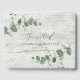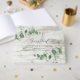 Lindo design de casamento com folhagem de eucalipto delicada. Parte de uma coleção moderna. suporte de madeira branca