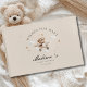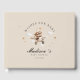Celebre a chegada do seu pequeno com o nosso adorável "Desejos por Bebê! "Livro de convidado do chá de fraldas. Com um encantador ursinho de pelúcia num design de avião vintage, este livro de hóspedes personalizável é a guardiã perfeita para recolher desejos, conselhos e amor sinceros dos vossos hóspedes. Escolha entre 7 opções de cores deliciosas para corresponder ao tema do seu chá — de neutrais suaves a azuis e pinks pastéis. O cobrir frontal e a coluna são totalmente editáveis, permitindo que você personalize o nome, a data e os detalhes especiais. Quer você esteja planejando um chá de fraldas moderno, clássico ou caprichoso, este livro de hóspedes é uma bela e significativa adição à sua celebração. Um eterno para o seu bebê tesourar um dia.